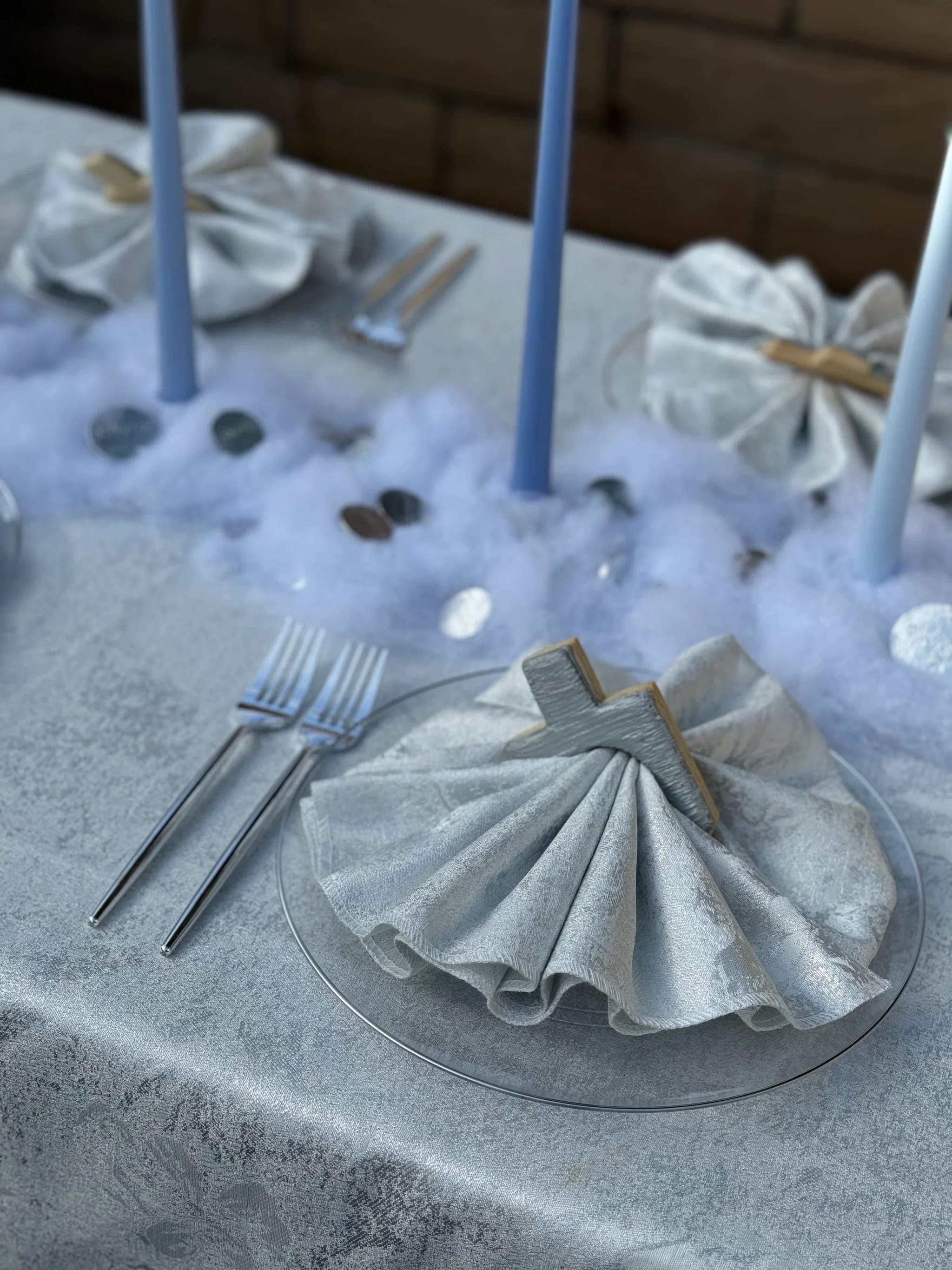 Metallic Tablecloth with subtle silver leaf & flower design.