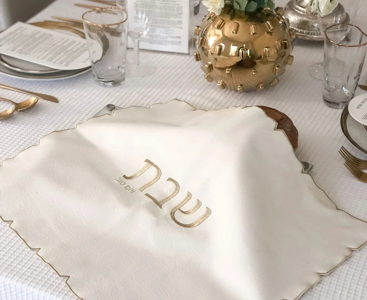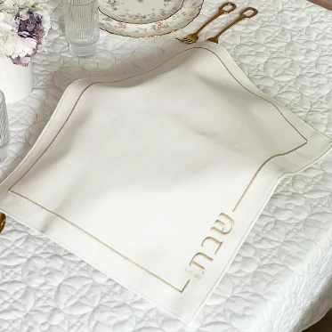 Modern White embroidered Leatherette Challah cover