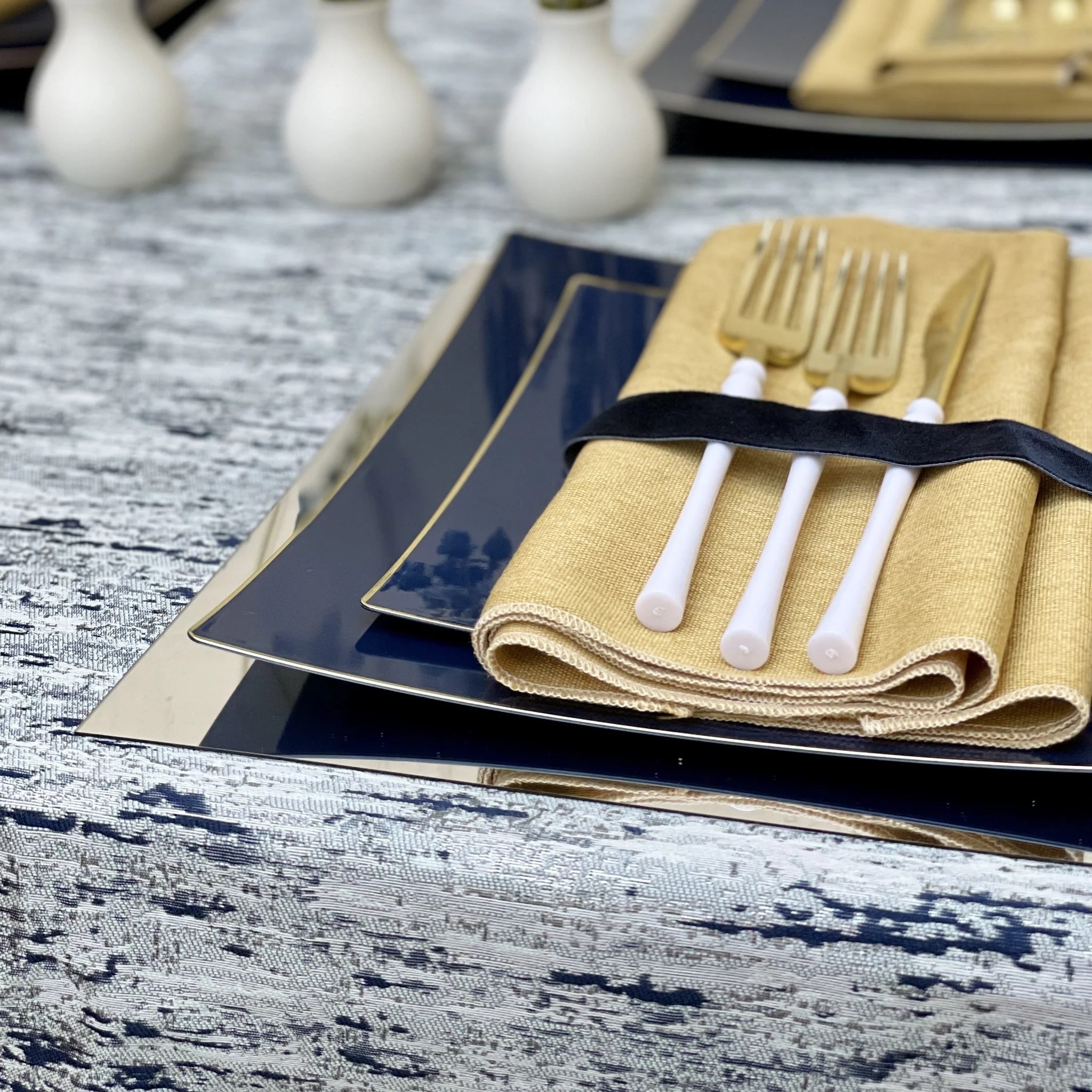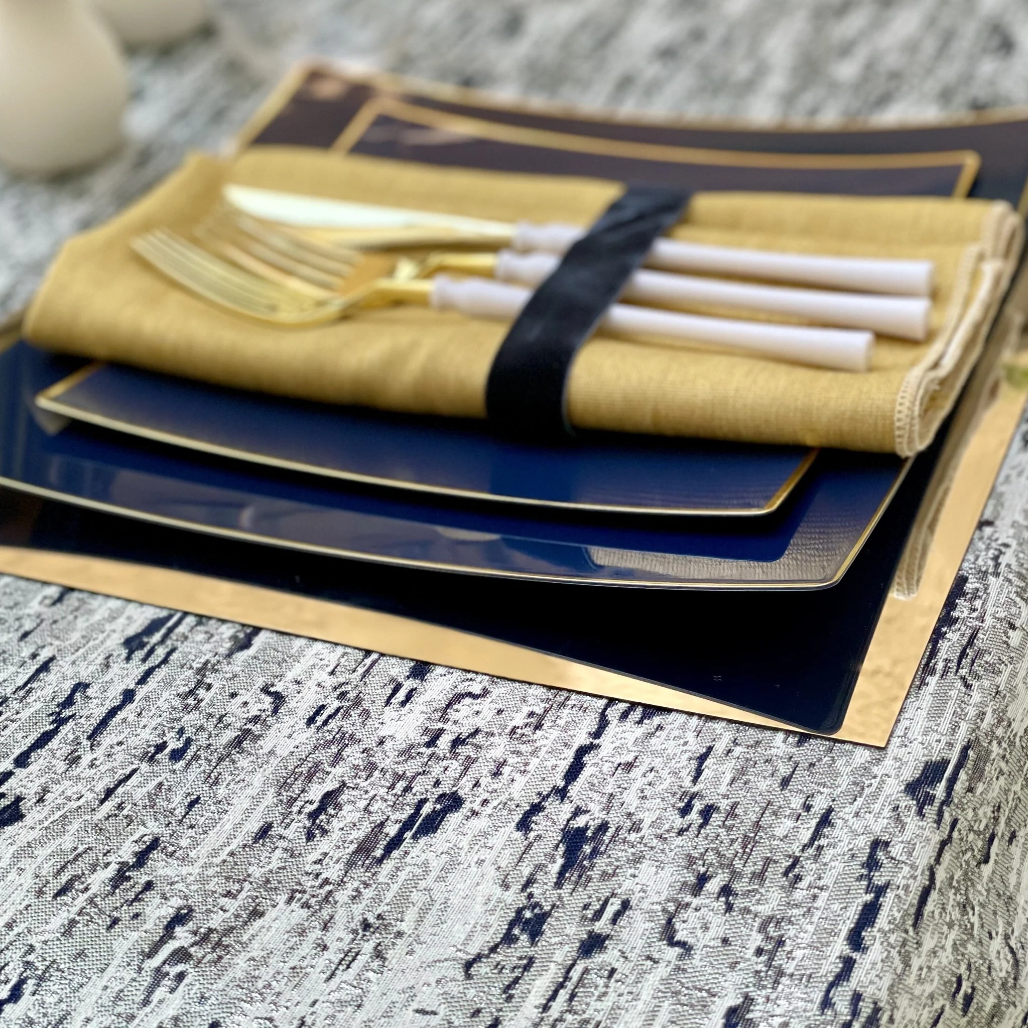 Color: Blend of Navy & SilverMatching napkins available. See Napkins